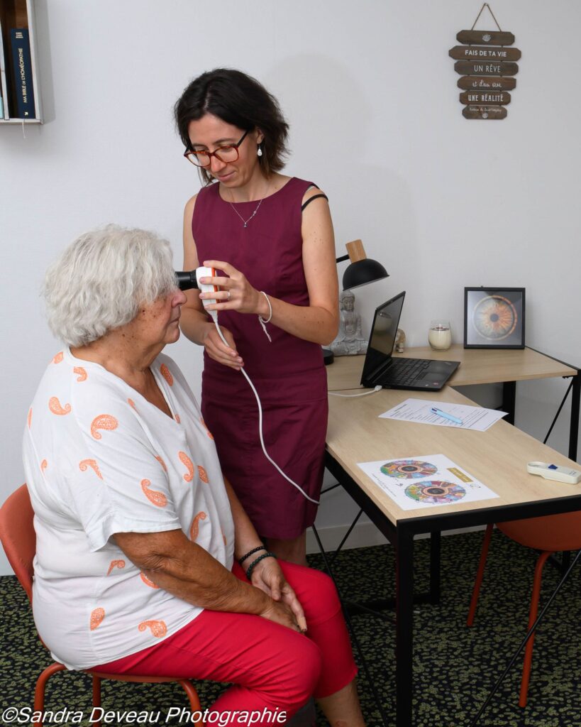 À l’aide d’un iridoscope (une caméra de précision), je prendrais une photo de vos iris afin de l’étudier avec vous. Nous regarderons principalement les éléments qui permettent d’identifier votre vitalité, vos toxines (quantité et type), et si votre organisme a de bonnes capacités de les éliminer.